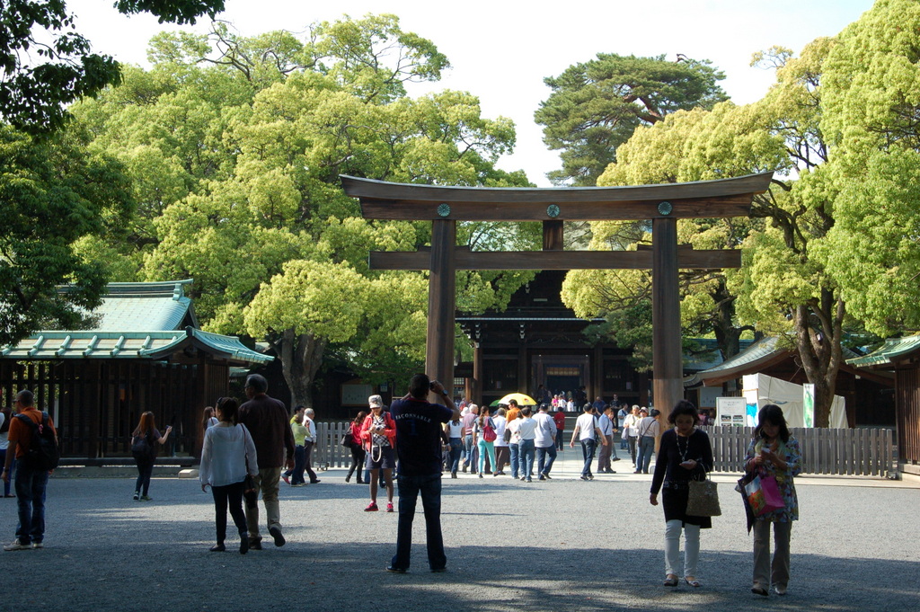 直接進入明治神宮,很難想像就在東京-代代木的市中心。旁邊就是列車班次密集的車站。